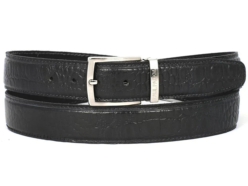 Paul Parkman Men's Crocodile Textured Leather Belt Multiple Colors (ID#B02)