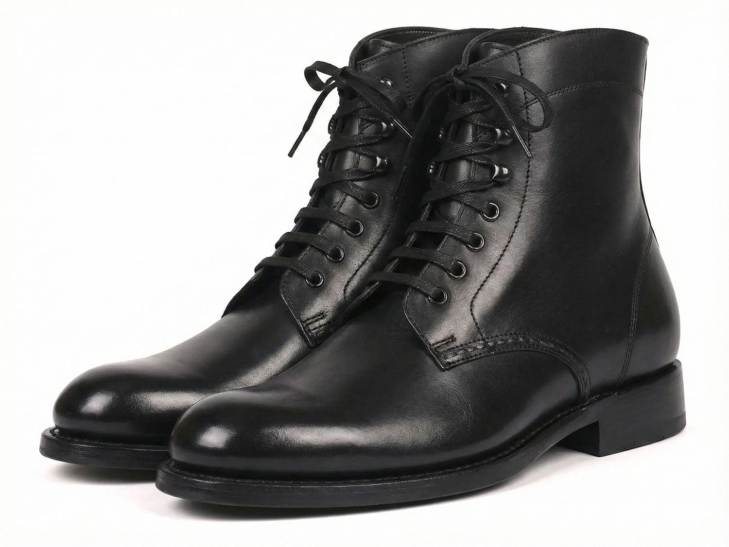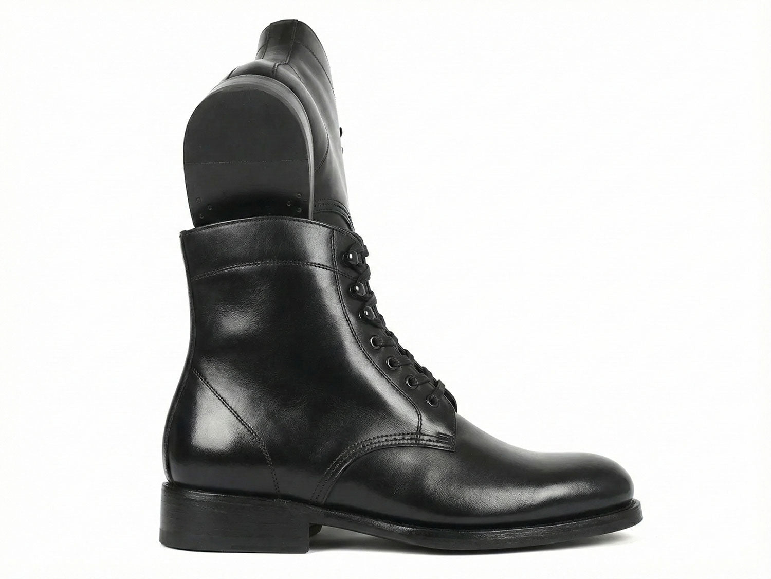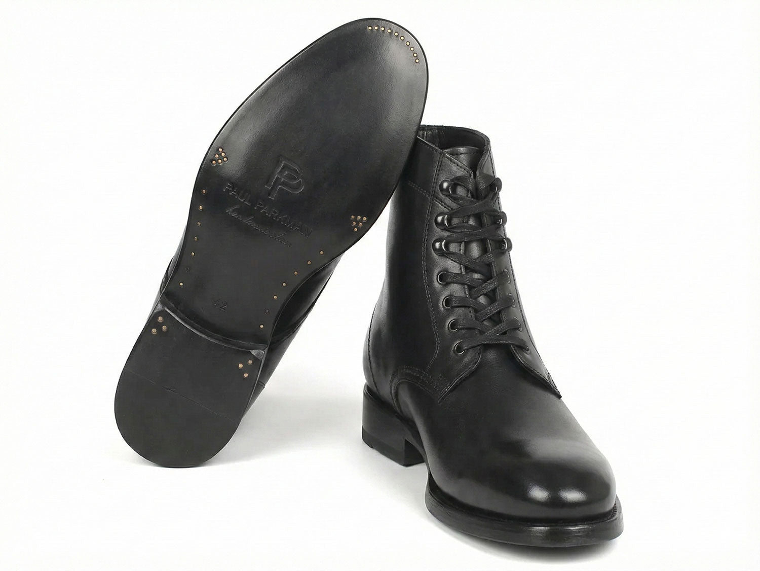 - Black hand-painted calfskin upper.